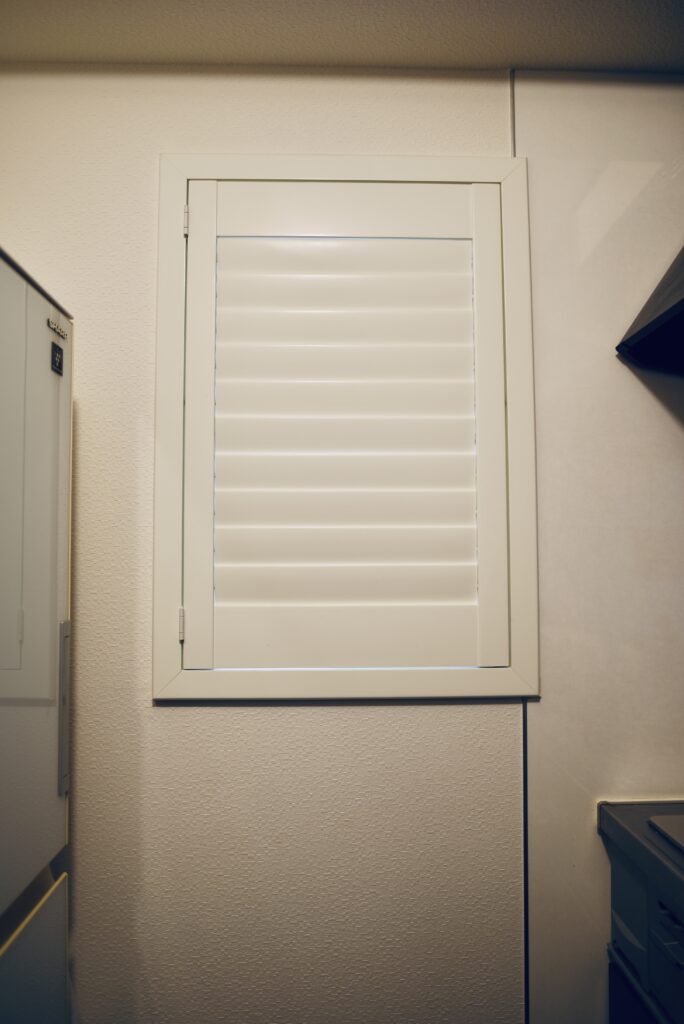 キッチンでは、ガスコンロで加熱調理をしていると、暑くなってくるときがあるのですが、その際に窓を開け、ルーバーも開くと、プライバシーを確保しながら通気することができます。ロールスクリーンのように風であおられて「バタンバタン」と音を立てたりもしません。すごく使いやすいです。