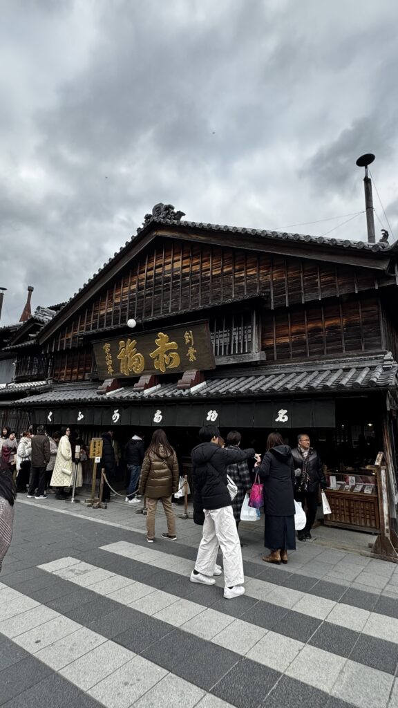 おかげ横丁の赤福でひと休みしました。赤福では「白餅 黒餅」をお土産に買って帰りました。
