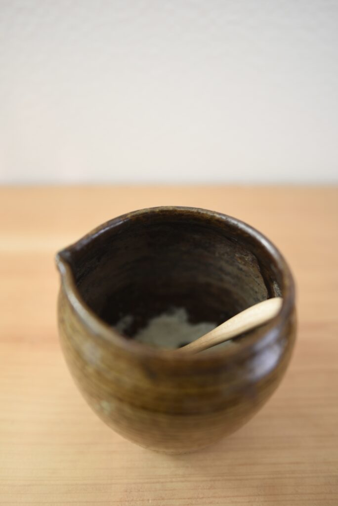 ひとつは、古越前の壺です。塩壺にどうかと思って買いました。
