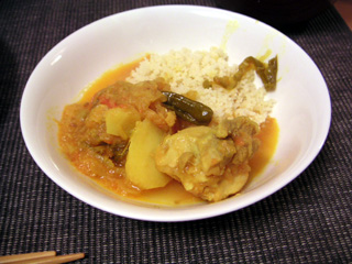 いつもスパイスから調合して作っているお気に入りのインドカレー、今回は大きく切った鶏肉を入れました。 今日はクスクスと一緒に食べてみました。鶏肉のごろごろ感とクスクスの細かさが対照的なおいしいカレーとなりました。 クスクスの戻し方ってすごく... -