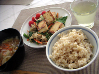 今日の昼食。 ・お味噌汁(キャベツ、玉ねぎ、ジャガイモ、わかめ、ネギ、煮干し粉) ・ひじきの煮物(ひじき、にんじん、白花豆、油揚げ) ・鶏だんごのトマト煮(鶏だんご、トマト、なす、セロリ、玉ねぎ、ピーマン) ・蒸したさつまいも ・玄米ご飯 お... -