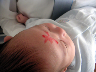 今日は子供のお宮参りだった。親たちと神社へ参拝した。 -
