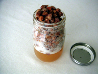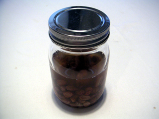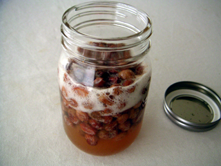 瓶のふたを開けるとシュワーっと音がして激しく泡が立った。発酵エキスのできあがり。夜にいよいよ酵母おこしを開始する予定。それまで冷蔵庫に入れて保存する。 -