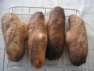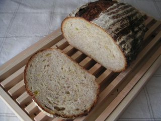 昨日、オレンジピール入りカンパーニュを焼いた。自家製酵母を使用、粉は「江別製粉ハードブレッド専用粉」80%, ライ麦粉10%, 全粒粉10%の割合。一次発酵は28度で7時間と、じっくりおこなった。250度で予熱し、蒸気注入。今回はちゃんと220度に下げて焼い... -
