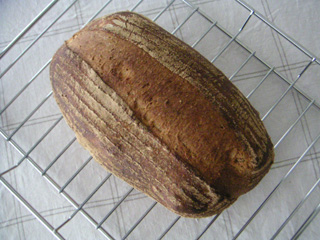 本日、朝からヘーゼルナッツ入りカンパーニュを作った。自家製酵母を使用、小麦粉は「江別製粉ハードブレッド専用粉」。一次発酵にじっくり6時間かけ、蒸気注入して焼き上げた。よくふくらんで、クラストはバリッと、クラムはしっとりしていた。 -