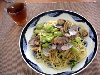 土曜のお昼はたいていオットがパスタを作ってくれる。昨日のパスタは、「あさりと水菜とそら豆のパスタ」。この季節にしか作れない食材ばかり組み合わせている。レシピは、「NHKきょうの料理5月号」の植竹シェフのレシピを参考にした。 あさりのうまみが麺... -