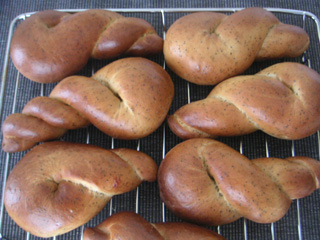 先日、会社の先輩ママのお宅に同僚ママと遊びに行った。 おみやげにパン・オ・テを焼いた。仕込み水が濃いアールグレイ紅茶液で、生地にはアールグレイの細挽き茶葉も入っているパンである。 27度でふっくらと発酵させたので写真のようにボリュームのある... -