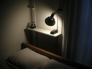 これも夏休みの話~。 ベッドの枕元に棚を取り付けてもらった。 ベッドは片側を壁にくっつけておいており、反対側の枕元には窓があるため、ベッドサイドテーブルが置けなくて困っていた。 ライトや携帯充電器を置くような小さな棚が欲しいよーといつも言っ... -