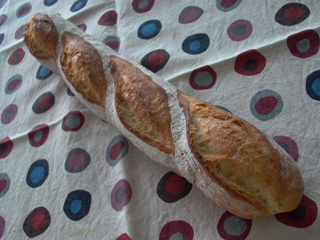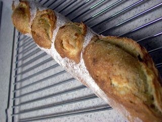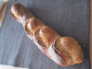 今日、バゲットを焼いた。 昨夜、少しのイースト生地を作って野菜室で一晩寝かした。 朝起きてパンチし、ぬるま湯をボウルに当て、生地温を20℃位まで戻してから成形した。20分ほどたってクープを入れ、窯入れ。 ホイロの生地はいつも帆布の上に置いていて... -