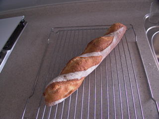 平日だが、バゲットを焼いた。 粉は強力粉と薄力粉を6:4の割合で。インスタントドライイースト使用。 1次発酵をじっくりおこない、途中でパンチ。私はパンチをするとき、バシンと勢いよく叩くようにしている。この方が生地が反発してますます気泡が入ると... -