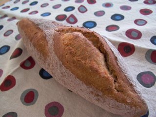 またバゲットを焼いた。 粉は「1CW」と「ドルチェ」を50%ずつ。インスタントドライイースト。 少しのイーストで手ごねした生地を一晩野菜室にて発酵させ、生地温を20℃まで上げてから成形した。 石床を入れたMieleオーブンをじっくり予熱し、250℃18分、210℃... -