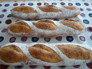 この前焼いたパンです。 粉は「グリストミル」(石臼挽き粉)、酵母はホシノのフランスパン用を使いました。 給水は70%くらいです。 「グリストミル」、石臼挽きだけあって、高い粉なんですけど、とても気に入りました。 よく吸水するので作業性がよいし、焼き色が濃く入... -