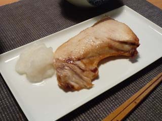 ぶりの塩焼き、大根おろしを添えて食べます。 角切り大根をマルチクイックでつぶせば、あっという間に大根おろしが作れます。 -