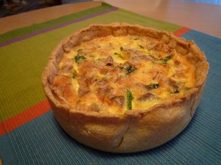 キッシュを作りました。 パート・ブリゼは私が作り、アパレイユはオットが担当しました。 直径18cmのスポンジ用の台を使って高さを出しました。 ふっくらと焼き上がりました。 -
