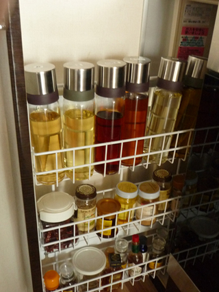以前、ガスコンロ脇の狭い調味料収納スペースの改善をしました。 その時の記事はこちらです→調味料収納の改善 今回、本当に簡単ですが、さらに工夫を追加しました。 実は、この棚、背の高いガラスびんなどを立てると、底がバスケット状になっているため、... -