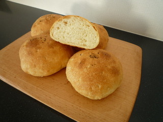 この前焼いたパンです。 粉は薄力粉50%, タイプER 50%、酵母はホシノぶどう酵母を使いました。 レシピは「パンの教科書」を参考にしました。 -