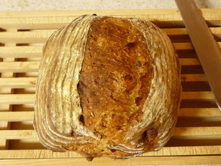 この前焼いたパンです。 粉はトラディショナル80%, 全粒粉10%, ライ麦粉10%で、酵母はホシノぶどう酵母を使いました。給水は70%くらいでした。 27℃で一晩発酵させた生地をボウルごと冷蔵庫にしまって出社し、帰宅後に成形して2次発酵して焼き上げました。... -