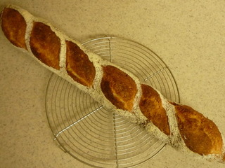 この前焼いたパンです。 粉はトラディショナル100%, 酵母はホシノ小麦粉種(赤)を使いました。 最終発酵が雑で、時間が短く、クープの開きが悪かったです。 もう少し焼き込んでもよかったかも。 -