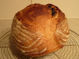 おせちの残りの黒豆を入れてカンパーニュを焼きました。 黒豆はめでたく使い切りました。ちょっとさみしいですがTT 粉はフランス100%, 酵母はホシノ丹沢フランスパン酵母を使いました。給水は60%くらいでした。 25℃で一晩1次発酵させた生地を野菜室に入れ...