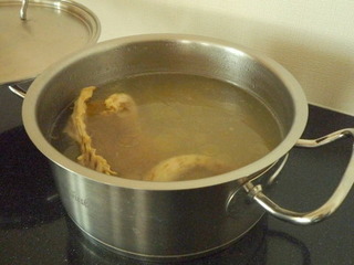 Mieleオーブンの余熱でチキンストック作り