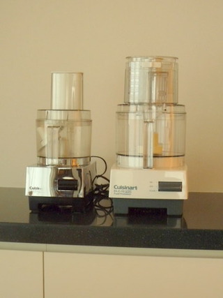 ついに、ウチにクイジナートの大型フードプロセッサーがやってきました♪(*^^)o∀*∀o(^^*)♪ 画像右の白い方です。左のは10年使った容量1リットルのもの。ちなみに、もう家には居ません。オークションで新しい持ち主のところへ貰われていきました。 ホワイト...