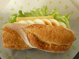 この前のバゲットで作ったバゲットサンドです。レタスとフリコゴーダチーズとゆで卵をはさんでます(o^^o)この組み合わせ、永遠! 包み紙は、コストコで見つけたお花柄のかわいいワックスペーパーを使ってます(^^) そして昨夜またバゲットを焼きました。 粉... -