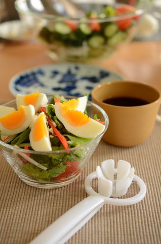 この前、100円ショップで見つけた卵切り器、すごく気に入っています。 スライスするものならよく見かけるし持っているのですが、縦に6分割してくれるのって私には珍しかった・・・。 シンプルコンパクトな外観も一目で気に入りました。すぱっときれいに切... -