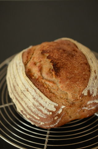 先日焼いたパンです。 粉はトラディショナル80%, ライ麦粉20%, 給水は70%くらいです。 酵母はサフ・インスタントドライイーストを0.15%使いました。 25℃で一晩発酵させて朝起きたらもういい感じに膨らんでいたので、慌ててオーブンをつけて焼き上げました... -