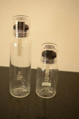 ウチで愛用している、HARIOのドレッシングボトルです。注ぎ口からたれない作りになっているのですごく使いやすいんです。 大きいのは240mlで、自家製ドレッシングを作って入れ、冷蔵庫に保存しています。小さい方は120mlで、会社の昼食でサラダを食べると... -