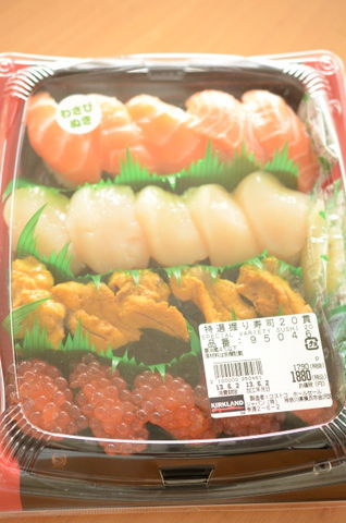 コストコに行くと、息子に必ず「買って!」とせがまれるのがこのお寿司です。ネタはサーモン、ホタテ、ウニ、いくらです。 息子はわさびが食べられないので、「わさびぬき」シールが貼ってあるものを選んでカートに入れます。ネタが大きくてなかなかおいし... -