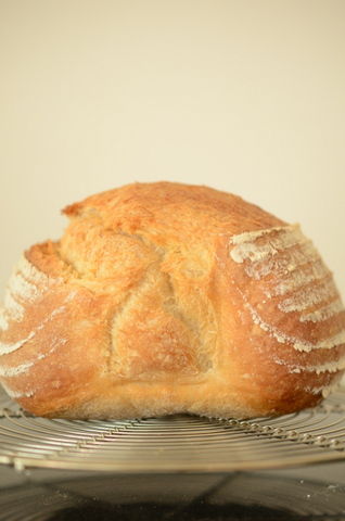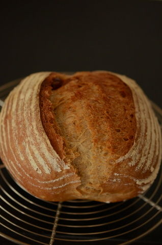 またまた、カンパーニュを焼きました。 粉はトラディショナル100%, 酵母はサフ インスタントドライイースト0.2%, 吸水は72%でした。 一次発酵は18℃のワインセラーで6時間ほど寝かせています。 クープが勢いよく開いたので、横から写真を撮ってみました。す... -