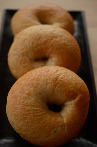 ワインセラーでじっくり発酵させたベーグルを焼きました。 粉は春よ恋80%, ライ麦粉20%, 酵母はsafインスタントドライイースト0.2%, 吸水は58%くらいでした。 一次発酵は18℃のワインセラーで6時間ほどしました。 ベーグルは一次発酵をしないレシピもあるく... -