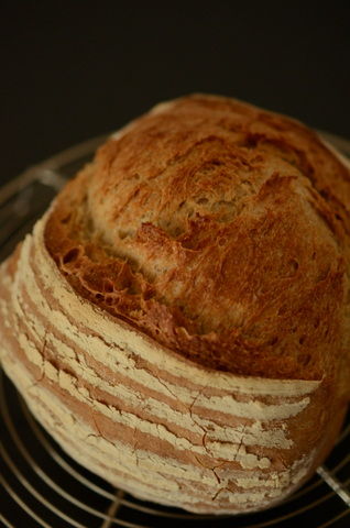 カンパーニュを焼きました。 粉はTYPE ER 90%, ライ麦粉 10%, 酵母はサフ ドライイースト青缶0.4%、給水は70%くらいでした。 夜のうちに生地を仕込んで一晩(24℃, 8時間ほど)発酵させ、朝起きてオーブンのスイッチをつけ、2次発酵して焼き上げました。 発...
