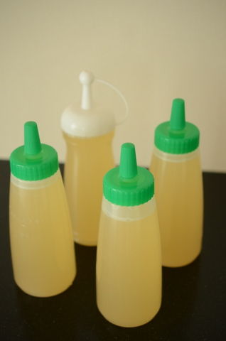 約10日間で梅シロップが完成しました! 実はこれ以外にも3リットル以上とれました。 梅シロップは、盛夏にかき氷にかけて楽しもうと思います^^ 梅の実を一粒残さず使い切ったのでホッとしました^^ 使い終わったガラス瓶は洗って乾かしてしまっちゃいました... -