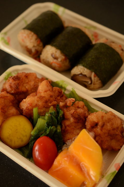 本日は息子のサッカー合宿の初日でした。 お弁当を持たせる必要があったため作りました。 鶏の唐揚げ 丸十密煮 小松菜のおかか和え ミニトマト マンゴー 鶏牛蒡御飯のおにぎり 使い捨て容器の指定があったため、いつものわっぱではなく、100円... -