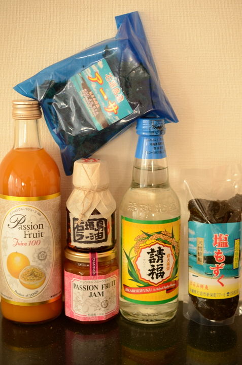 無事、帰宅しました。買ってきたお土産です。 画像左から: パッションフルーツジュース、アーサ、ラー油、パッションフルーツジャム、泡盛「請福」、塩もずく パッションフルーツジュースは、試飲したら酸っぱかったので、料理にも使えそうです。ドレッシ... -