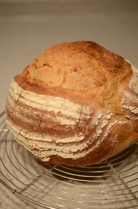 休日に焼いたカンパーニュです。ジャムやバターを味わいたかったので、全粒粉を10%入れただけのシンプルな配合としました。 室温で1時間発酵させ、あとはワインセラーで6時間ほど寝かせてから焼き上げました。 もりもりと縦方向に窯伸びして、良い感じにク... -