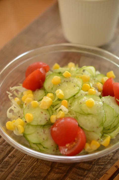 先週は、「7選プチ」でした。 じゃがいも、ニラ、エン菜、ミニトマト、きゅうり、とうもろこし、キャベツ キャベツ、ミニトマト、きゅうり、とうもろこし でサラダを作りました。 残りのきゅうりは蛇腹に切り、立て塩(たてじお)につけました。 卸売市場... -