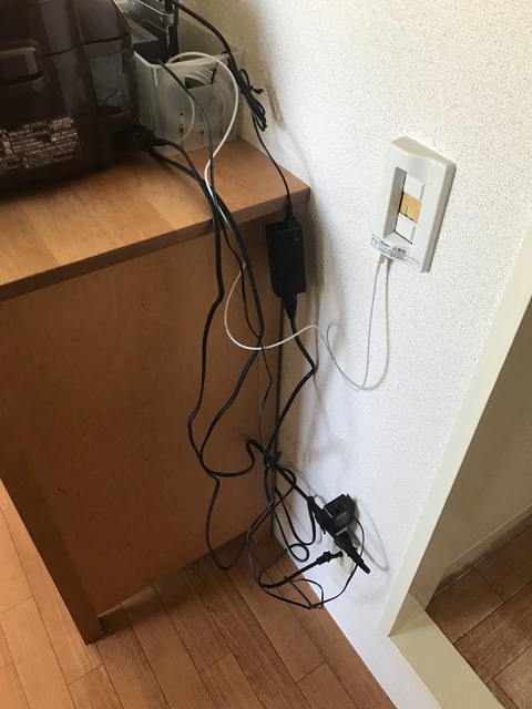 ソフトバンク光 の工事が行われ、家でもONU, 無線ルーター の設定が済んで、光回線が使えるようになりました。 TV, PC, iPhone すべてwifi接続ができるようになりました。 ・・・なったのはいいんですが、キッチンのケーブルがえらいことになってます。 ケ... -