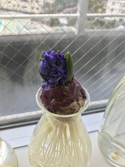 青系のヒヤシンスが咲き出しました。 すごく嬉しいです。 励みになります。応援のクリックお願いします -