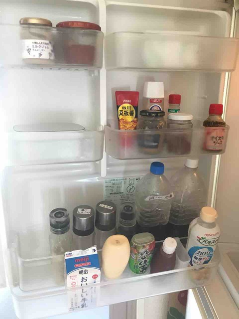 ウチの冷蔵庫内の様子です。扉には調味料、薬味、バター、ジャムを入れています。持っている調味料・薬味は次の通りです。ちなみに、全て化学調味料不使用です。豆板醤ナンプラーオイスターソース中濃ソース カロリー糖類ハーフポン酢(自家製)薄口醤油濃...