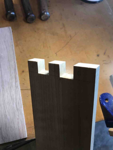 毎回楽しみにしている木工教室です。練習材にて、5枚組の継手の仕上げをしました。男木(おぎ)と女木(めぎ)の噛み合いをみながら、鑿(のみ)で調整しました。5枚組の上部は、「留」(とめ、部材を45度に切って直角に接合する仕口のこと)なので、白書... -