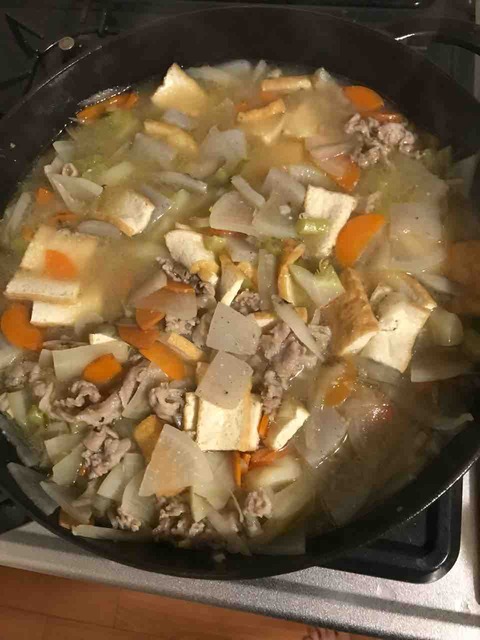 今週の野菜です。大根、キャベツ、じゃがいも、水菜、長ねぎ、姫パプリカ、小松菜、玉ねぎ、にんじん、さつまいも豚肉、大根、ごぼう、じゃがいも、こんにゃく、厚揚げ で豚汁を作りました。包丁、火入れ、味つけはほとんど息子がやってくれました。私は出... -