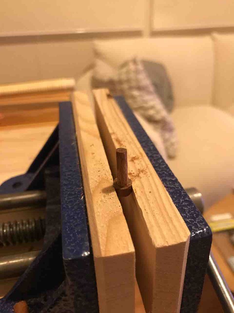 前回の続きです。→「包丁の鞘のDIY その1」→「包丁の鞘のDIY その2」→「包丁の鞘のDIY その3」留め具を作りました。直径8mm, 長さ20mm の丸棒を加工しました。つまみの部分をぐるりと墨付けして、胴付き鋸で表面から1~2mm切り込みを入れました。バイスで... -