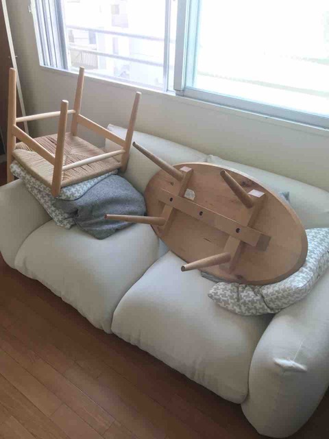 お掃除の時、椅子やソファーテーブルはソファの上に転がし、もうひとつの椅子とテーブルはクローゼットに押し込め、床に何もない状態にしてから、一気に羽根ばたき、掃除機、ぞうきんワイパー をかけます。すっきりさっぱりして気持ちのよい習慣です。励み...