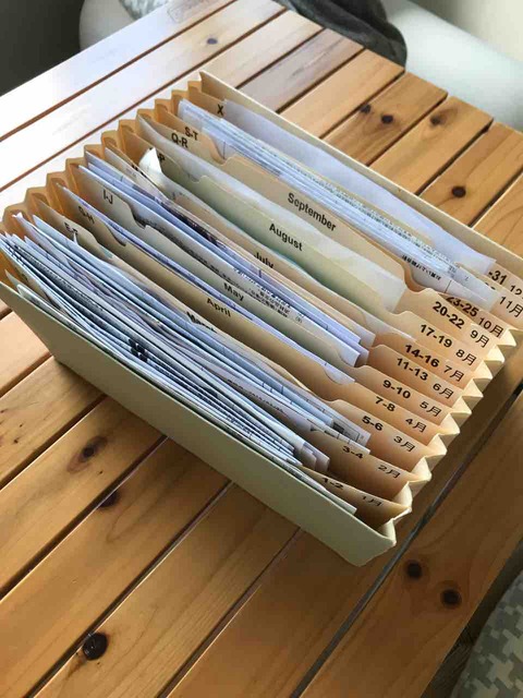家計簿をつけていることもあり、記帳後のレシートをレシート入れに1年分保存してました。しかし、家計簿に記帳した後は、レシート類を見返すことはほぼないとわかりました。小さい家ではこの蛇腹のボックスが邪魔なので、思い切ってこのレシート入れと、レ... -