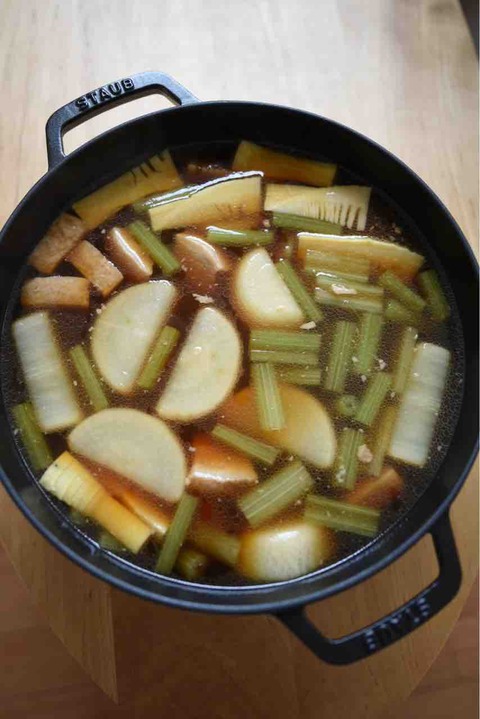 先週の野菜です。たまねぎ、じゃがいも、ごぼう、大根、レタス、小松菜、かき菜、葉ねぎ、トマト、しめじ筍、大根、蕗、豚ばら肉 で炊き合わせを作りました。↑これは出来上がりの瞬間で、最初からごった煮したわけではありません。固さや色など違いすぎる... -