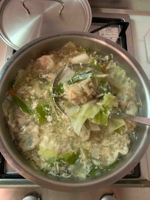 先週の野菜です。玉ねぎ、じゃがいも、ごぼう、かぶ、南瓜、キャベツ、春菊、長葱、パプリカ、舞茸キャベツ、にんじん、大根の皮、長葱、舞茸 でかき卵汁を作りました。先週作って冷凍しておいた餃子も入れて水餃子にして食べました。... -