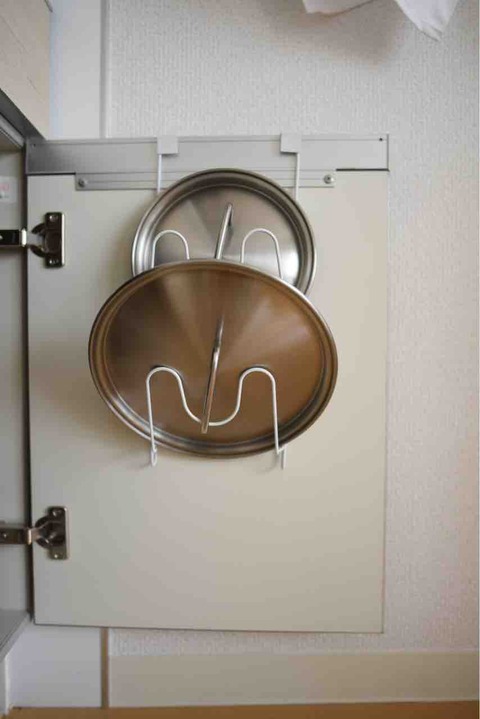 キッチンはまだそれほど手を入れてませんが、扉裏収納は以前から使っていたものを移設したり新しく買ったりして活用しています。ガスコンロ下の右扉は、セリアの鍋ぶた収納ラックを掛けています。フィスラーのプロコレクションのソースパンやキャセロール... -