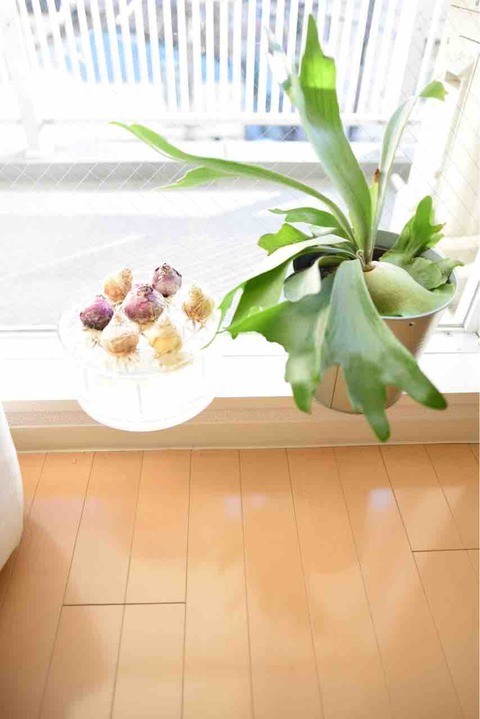 日の当たらない玄関クローゼットの中で根を伸ばしたヒヤシンスをDKに出しました。もし、根が出てこないやつがあったら、「追いヒヤシンス」しようと待ち構えてましたが、すべてきちんと根を伸ばしてくれました。窓辺の一番日当たりの良い場所、コウモリラ... -